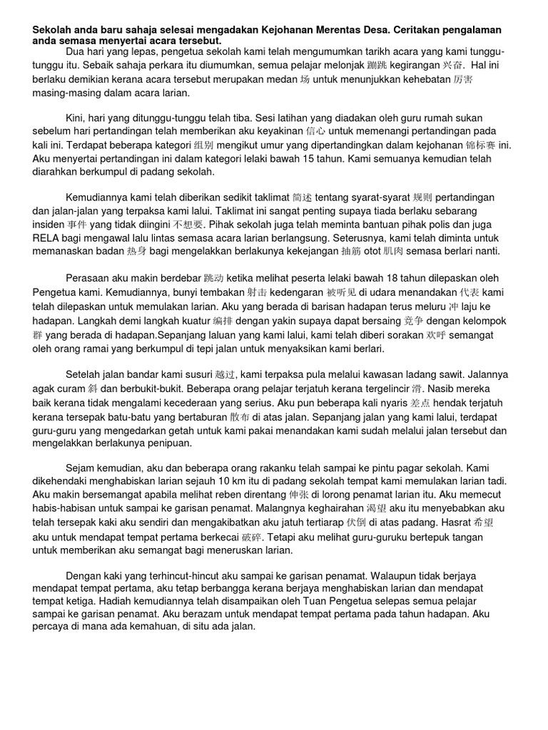 . Contoh Karangan Bahasa Melayu BM PT3 Tingkatan 1 2 3. Cipta sorakan untuk rumah sukan anda dan persembahkannya. Tulis Sebuah Cerpen Yang Berkisar Tentang Semangat Kejiranan.